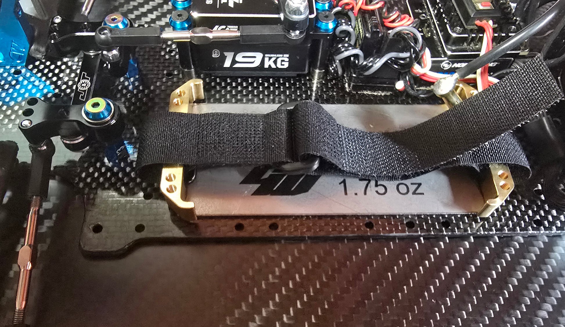 Includes: (2) Brass battery locators, (4) M3 stainless flat head screws & (4) M3 aluminum Ball stud washers.